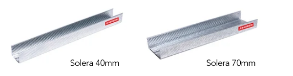 Las soleras, tanto la de 70 como la de 35, se utilizan como guías superior e inferior de paneles y en el perímetro de los cielorrasos monolíticos, para fijar a los montantes en su posición.